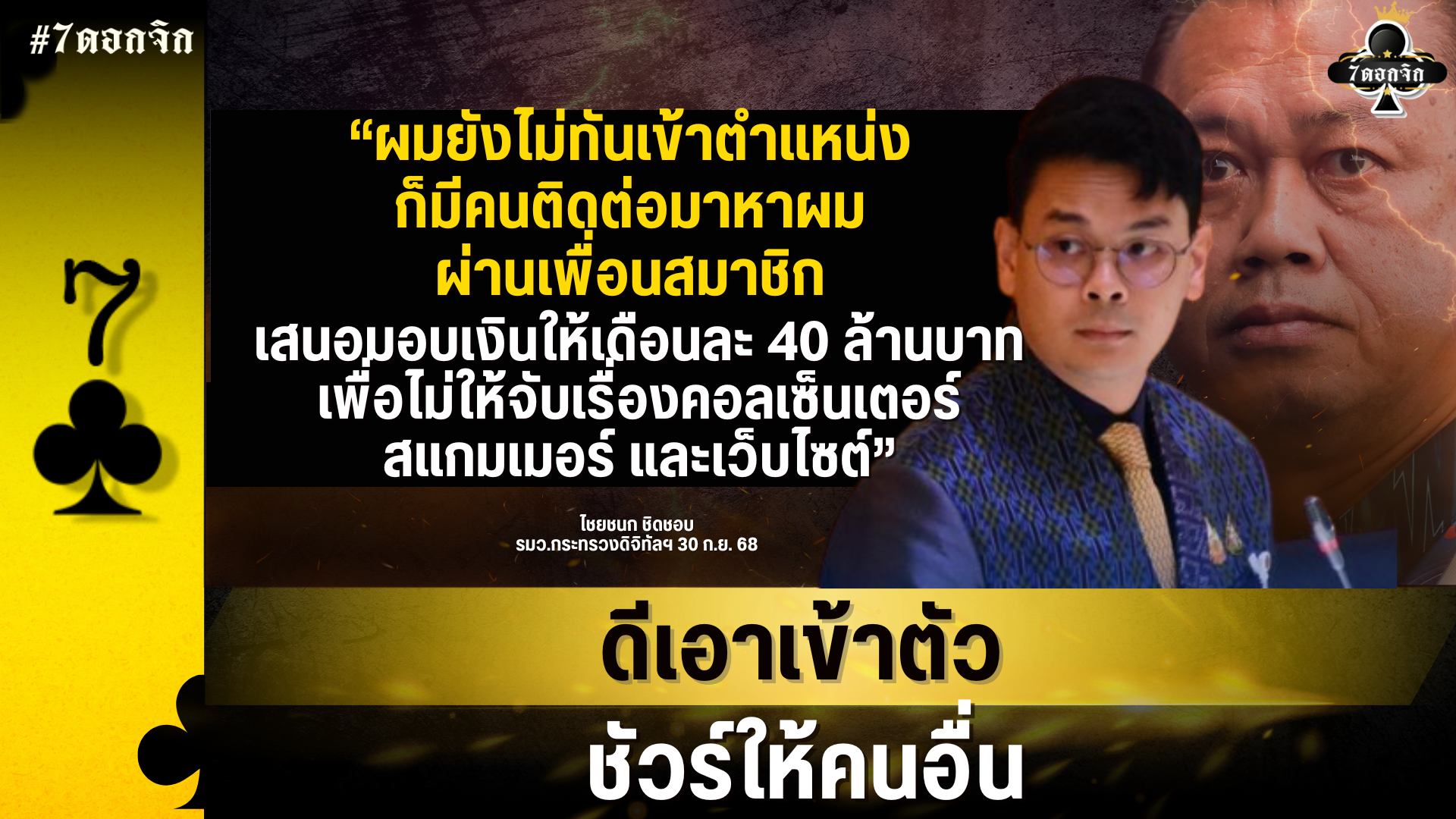 ♣ แสบได้พ่อ อุปโลกน์ส่วยแก๊งคอลมาสร้างภาพ แถมฟาดใส่เพื่อไทยตอนคุมดีอี ถ้าไม่ดำเนินคดีคนเสนอส่วย แสดงว่าแต่งเรื่อง หรือหากมีจริง ก็อาจจะรับทั้งส่วน เอามาแฉ แถมช่วยกำจัดคู่แข่งให้คนจ่ายอีก #7ดอกจิก