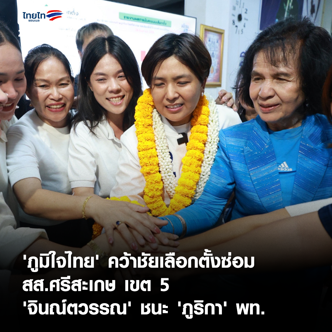 'ภูมิใจไทย' คว้าชัยเลือกตั้งซ่อม สส.ศรีสะเกษ เขต 5 'จินณ์ตวรรณ' ชนะ 'ภูริกา' พท. https://www.thai-tai.tv/news/21660/ . #เลือกตั้งซ่อมศรีสะเกษ #ศรีสะเกษเขต5 #ภูมิใจไทย #เพื่อไทย #จินณ์ตวรรณไตรสรณกุล #ภูริกาสมหมาย #ผลเลือกตั้งไม่เป็นทางการ #การเมืองไทย