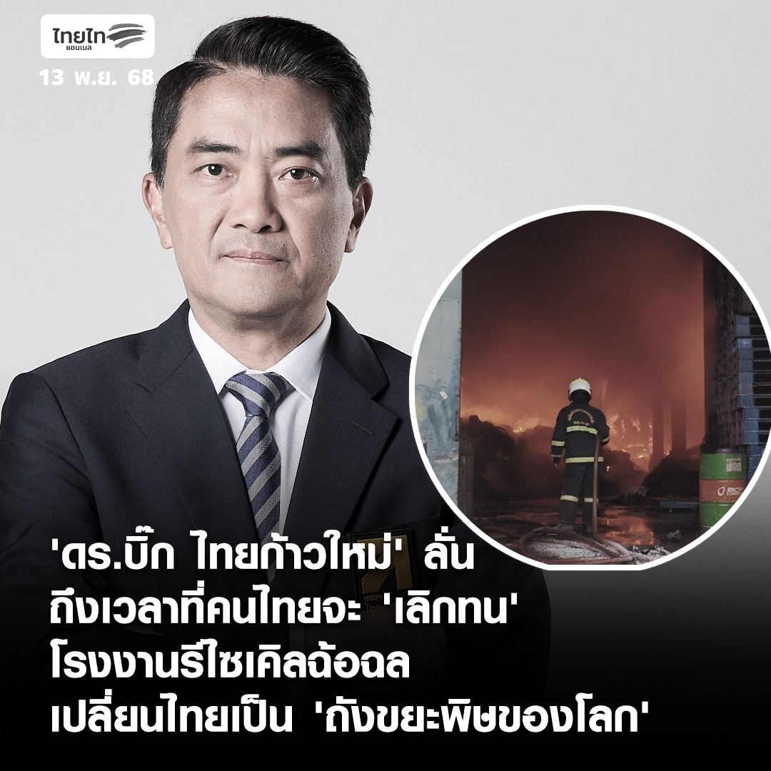 • 'ดร.บิ๊ก ไทยก้าวใหม่' ลั่น ถึงเวลาที่คนไทยจะ 'เลิกทน' โรงงานรีไซเคิลฉ้อฉล เปลี่ยนไทยเป็น 'ถังขยะพิษของโลก'
