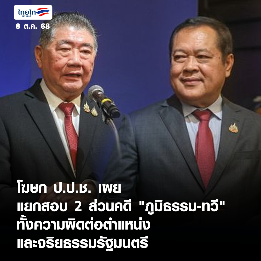 • โฆษก ป.ป.ช. เผยแยกสอบ 2 ส่วน คดี "ภูมิธรรม-ทวี" ทั้งความผิดต่อตำแหน่งและจริยธรรมรัฐมนตรี