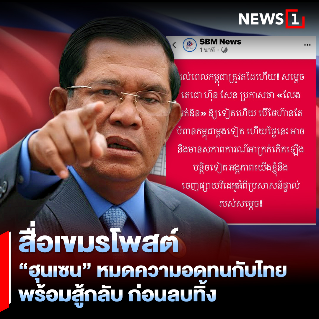 • สื่อเขมรโพสต์ข้อความอ้าง “ฮุนเซน” ประกาศหมดความอดทน พร้อมสู้กลับ หากไทยละเมิดกัมพูชาอีกครั้งจะเกิดสถานการณ์เลวร้าย