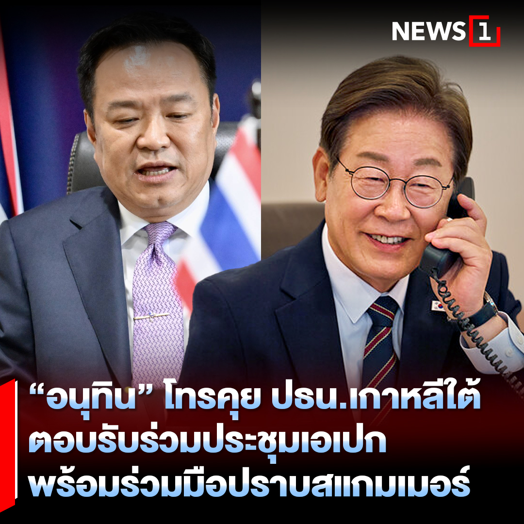 • ปธน.เกาหลีใต้ โทรศัพท์ยินดีกับนายกฯ เข้ารับตำแหน่ง ชมไทยมีศักยภาพเศรษฐกิจ นักลงทุนเกาหลี เพิ่มการลงทุนในไทย พร้อมขอบคุณที่ช่วยเหลือชาวเกาหลีโดนหลอกลวงในพม่า ด้านนายกฯ ตอบรับเข้าร่วมประชุมเอเปค 2025 ปลายเดือนนี้ พร้อมแสดงเจตจำนงร่วมมือปราบสแกมเมอร์