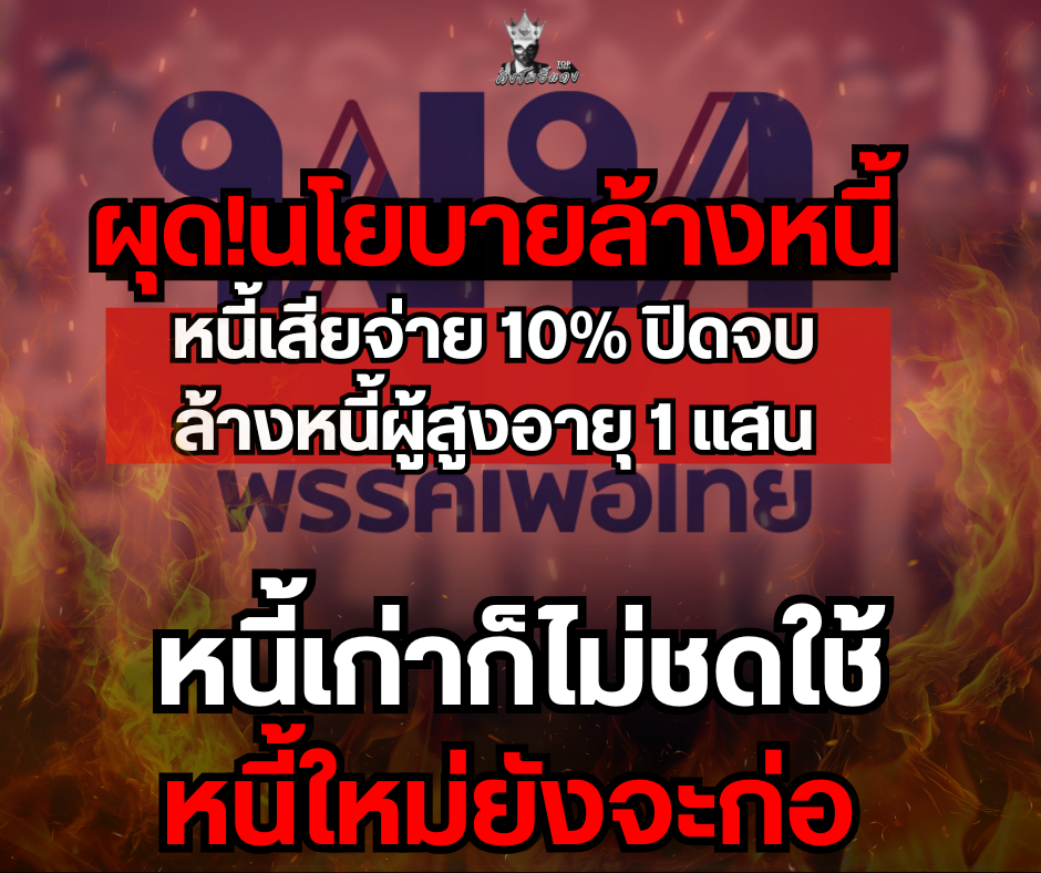 เพื่อไทยไม่หยุดประชานิยม ถลุงเงินภาษีมาล้างหนี้ให้เป็นผลงานตัวเอง ที่ค้างจ่ายเงินหมื่น ดิจิทัลวอลเล็ต ก็เงียบหาย สะเออะจะสร้างภาระหนี้ใหม่ให้ลูกหลาน #คิงส์โพธิ์แดง
