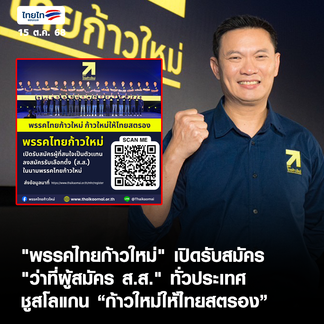 "ไทยก้าวใหม่" เปิดรับสมัคร "ว่าที่ผู้สมัคร ส.ส." ทั่วประเทศ ชูสโลแกน “ก้าวใหม่ให้ไทยสตรอง”