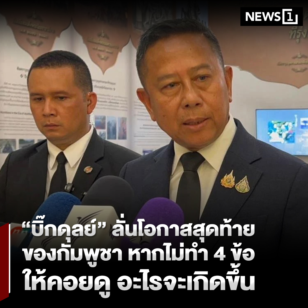 • รมช.กห.ลั่นเป็นโอกาสสุดท้ายของกัมพูชา หากไม่ปฏิบัติ 4 ข้อ ให้คอยดู อะไรจะเกิดขึ้น ยันถอนอาวุธพร้อมพลประจำปืน ยกเว้นกำลังรบ ย้ำไม่เปิดด่าน ต้องประเมินก่อนว่าความเป็นปฏิปักษ์ต่อกันสิ้นสุดลงจริงหรือไม่ โอดทหารมีกรรมรับศึกหลายด้าน