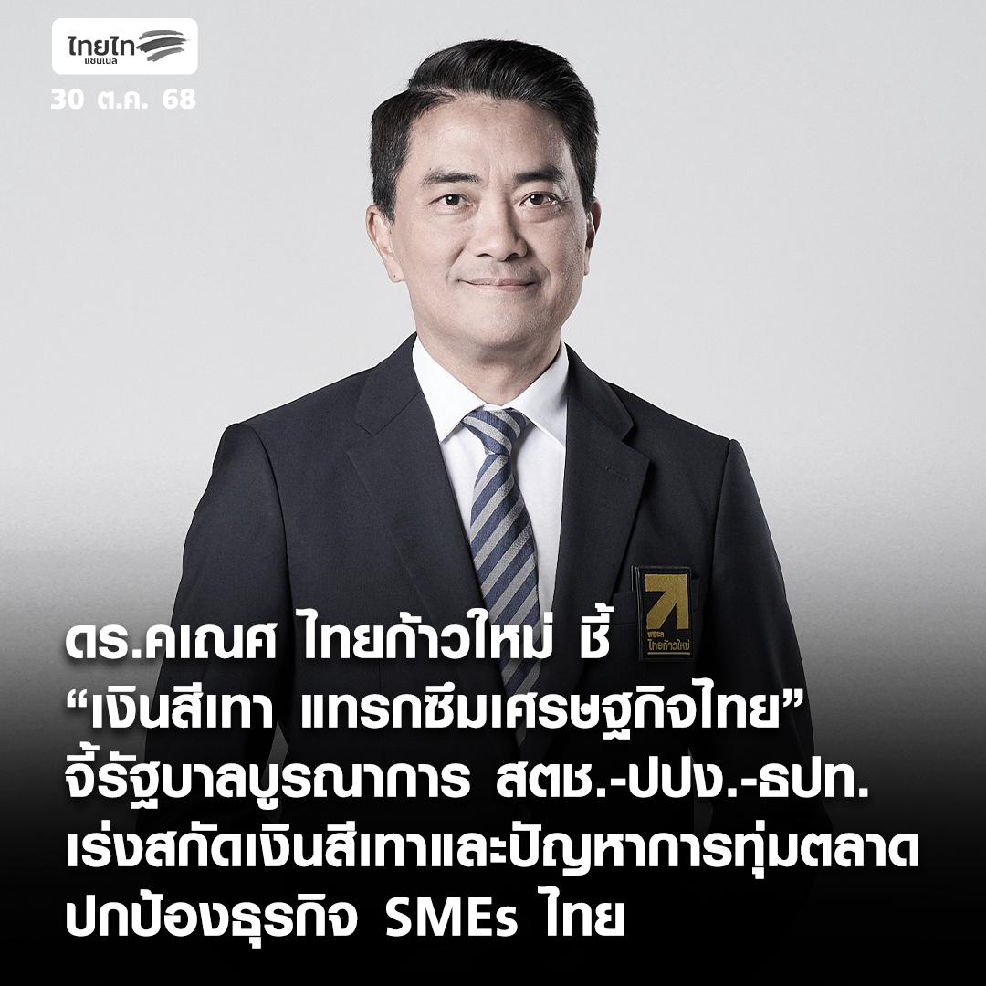 • ดร.คเณศ ไทยก้าวใหม่ ชี้ “เงินสีเทา แทรกซึมเศรษฐกิจไทย” จี้รัฐบาลบูรณาการ สตช.-ปปง.-ธปท. เร่งสกัดเงินสีเทาและปัญหาการทุ่มตลาด เพื่อปกป้องธุรกิจ SMEs ไทย
