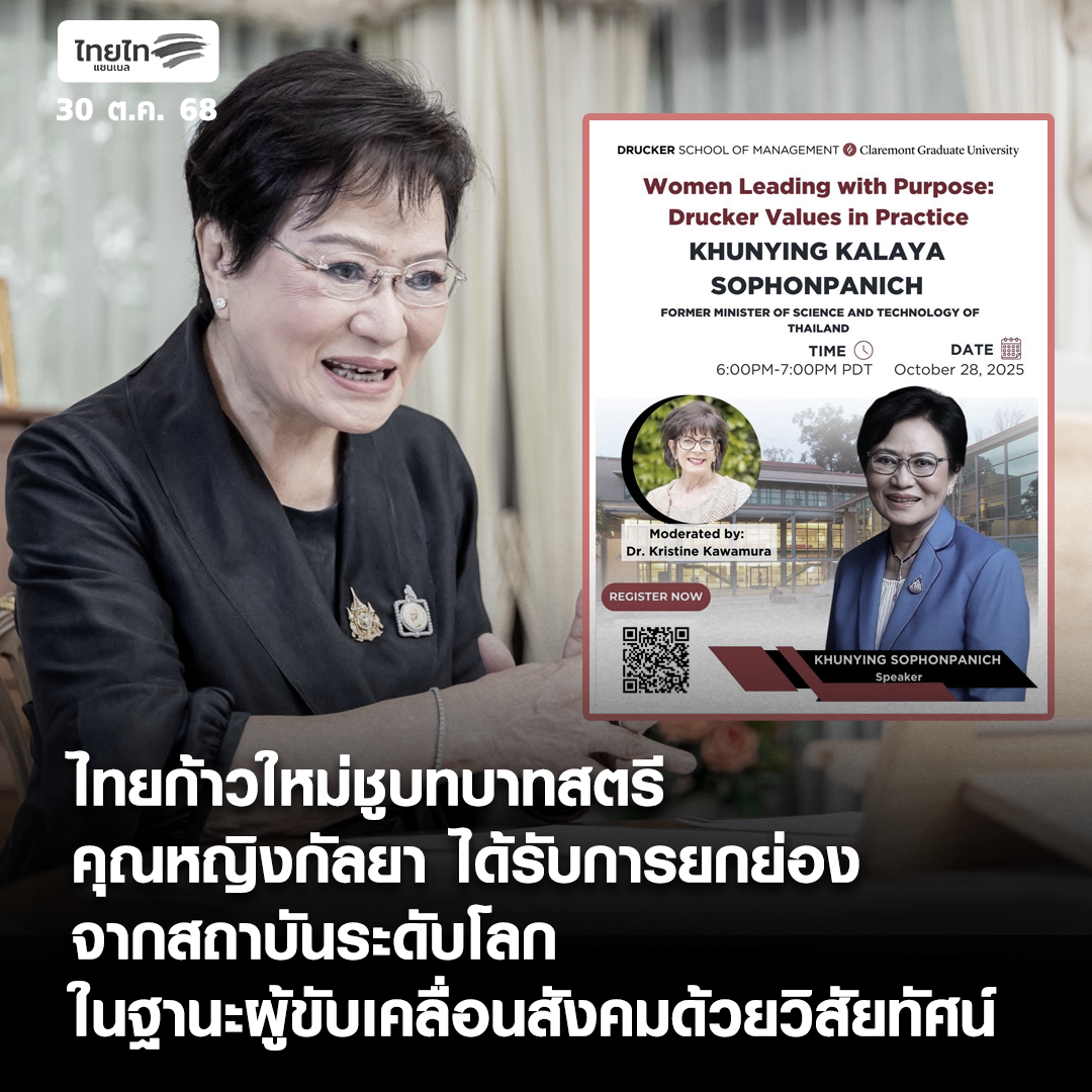 #ไทยไท #คุณหญิงกัลยา #ผู้นำหญิง #DruckerSchool #ไทยก้าวใหม่ #WomenLeadingwithPurpose