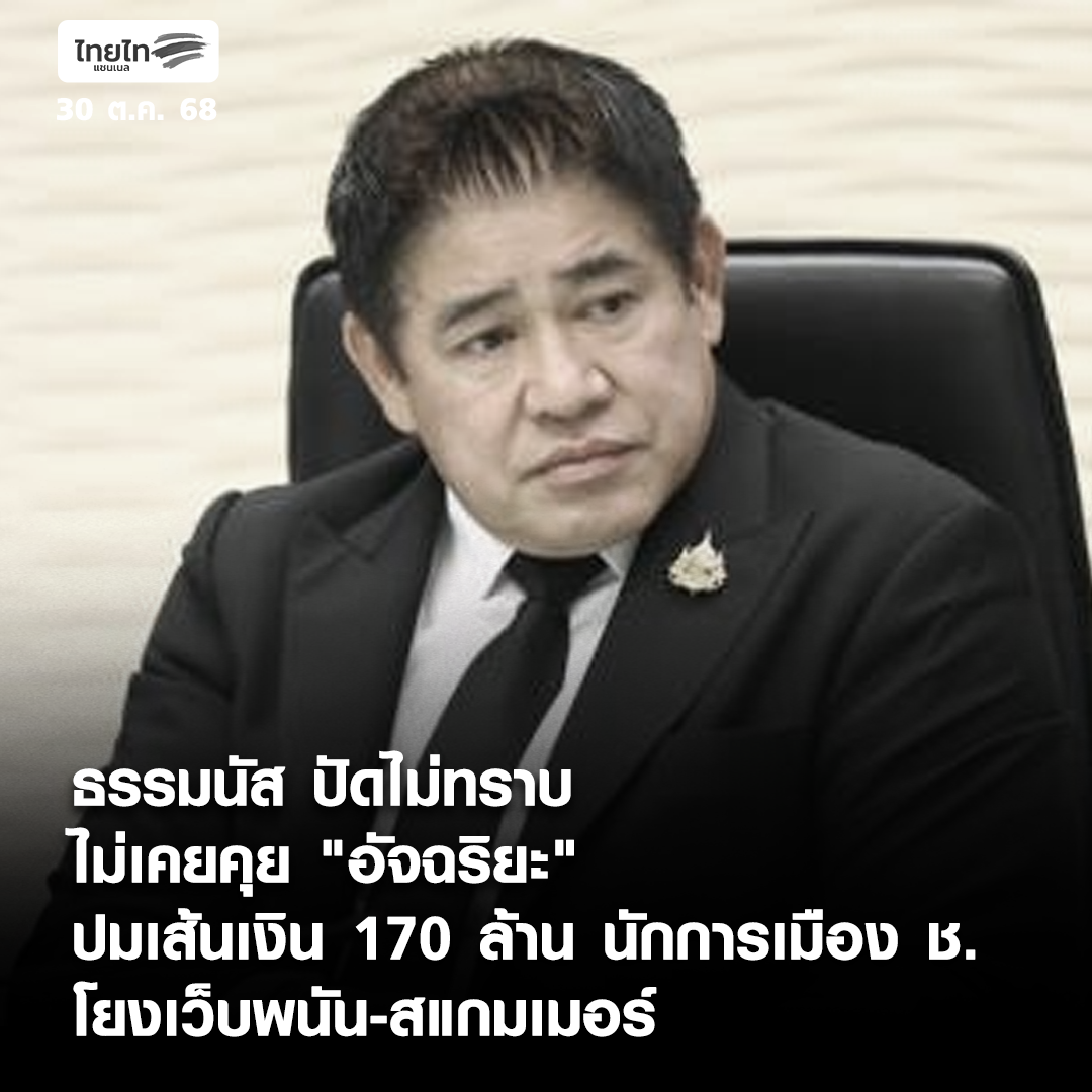 • ธรรมนัส ปัดไม่ทราบ-ไม่เคยคุย "อัจฉริยะ" ปมเส้นเงิน 170 ล้าน นักการเมือง ช. โยงเว็บพนัน-สแกมเมอร์