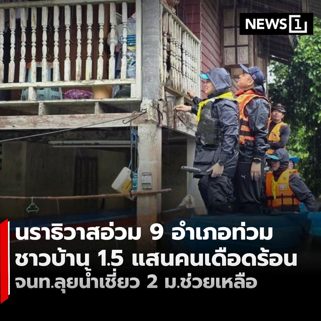 • นราธิวาสน้ำท่วมแล้ว 9 อำเภอ ประชาชนเดือดร้อนกว่า 1.5 แสนคน หลายพื้นที่ถูกน้ำล้นตลิ่งท่วมบ้านเรือนเป็นวงกว้าง เจ้าหน้าที่ต้องลุยน้ำเชี่ยวสูงกว่า 2 เมตรเพื่ออพยพผู้ประสบภัย พร้อมตั้งศูนย์พักพิงรวม 25 จุดรองรับผู้เดือดร้อน