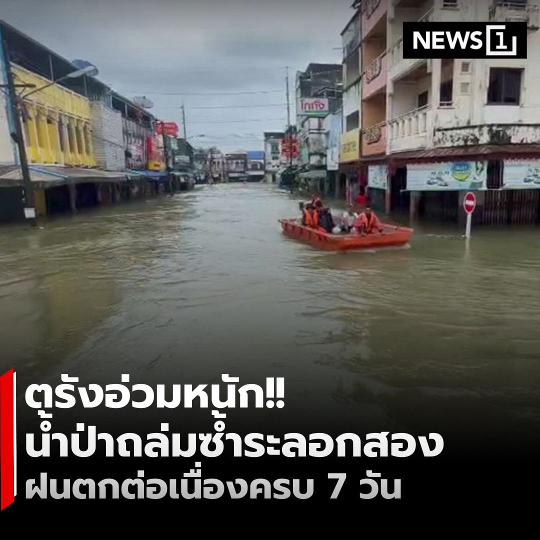 • สตูลวิกฤตน้ำท่วมต่อเนื่องเข้าสู่วันที่ 6 ทั้งจังหวัดยังจมอยู่ใต้น้ำ หลายชุมชนในเขตเทศบาลเมืองสตูลถูกน้ำไหลทะลักอย่างฉับพลัน ขณะที่ศูนย์บัญชาการรายงานมีผู้ได้รับผลกระทบกว่า 36,000 คน และมีผู้เสียชีวิตแล้ว 2 ราย ทุกหน่วยยังคงเร่งช่วยเหลือและติดตามสถานการณ์ใกล้ชิด
