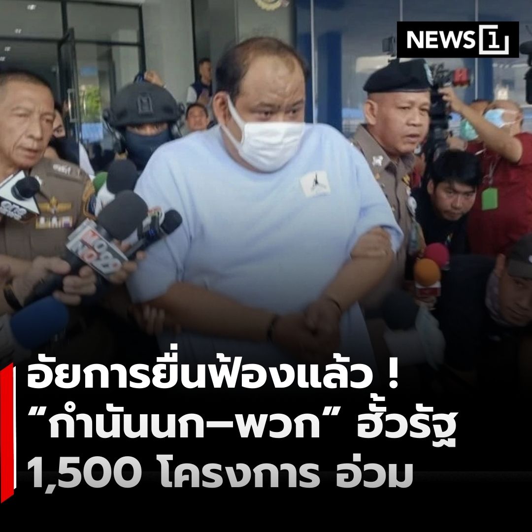 • อัยการคดีทุจริตกลาง ยื่นฟ้อง “กำนันนก” พร้อมพวก รวม 21 ราย ต่อศาลอาญาคดีทุจริตและประพฤติมิชอบกลาง กรณีร่วมกันฮั้วประมูลโครงการของหน่วยงานรัฐกว่า 1,500 โครงการ มูลค่าความเสียหายหลายพันล้านบาท