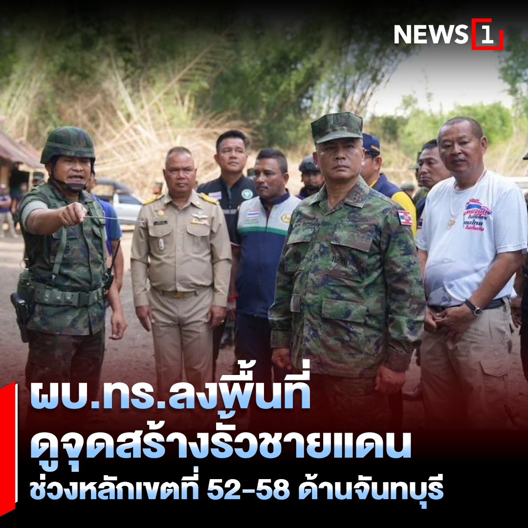 • ผบ.ทร.ลงพื้นที่ดูจุดสร้างรั้วชายแดนกัมพูชา ช่วงหลักเขตที่ 52-28 อ.สอยดาว - โป่งน้ำร้อน จ.จันทบุรี พร้อมตรวจสอบการรื้อทำลายบ้าน 3 หลังที่รุถกล้ำเขตแดนไทย ต.ชำราก จ.ตราด