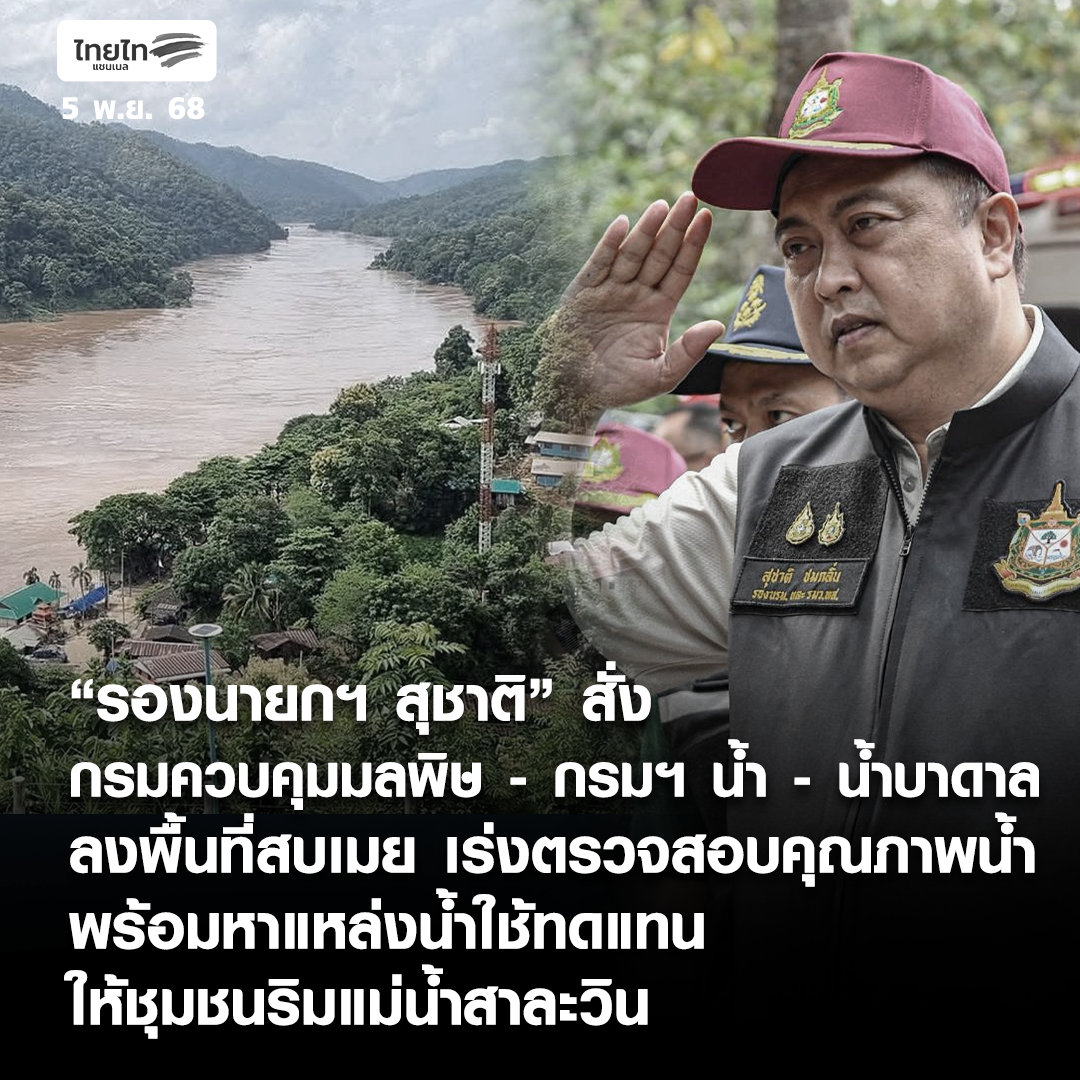 “รองนายกฯ สุชาติ” สั่ง “กรมควบคุมมลพิษ - กรมฯ น้ำ - น้ำบาดาล” ลงพื้นที่สบเมย เร่งตรวจสอบคุณภาพน้ำ พร้อมหาแหล่งน้ำใช้ทดแทนให้ชุมชนริมแม่น้ำสาละวิน https://www.thai-tai.tv/news/22218/ . #ไทยไท #สุชาติชมกลิ่น #สารหนู #แม่น้ำสาละวิน #แม่ฮ่องสอน #แหล่งน้ำทดแทน