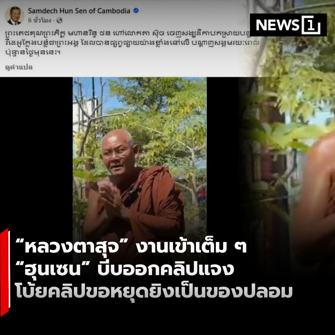 กลายเป็นประเด็นร้อนข้ามประเทศ เมื่อ “ฮุนเซน” ประธานวุฒิสภากัมพูชา โพสต์คลิป “หลวงตาสุจ” ออกมาชี้แจงกรณีคลิปอ้างว่าผู้นำกัมพูชาขอให้ช่วยทำวิดีโอเจรจาหยุดยิงกับไทย โดยยืนยันเป็น “คลิปปลอม” ถูกคนไทยตัดต่อกลั่นแกล้ง พร้อมประกาศความภักดีต่อกัมพูชาแบบสุดทาง ย้ำไม่มีวันหักหลังแผ่นดินเขมร . เพจเฟซบุ๊ก Samdech Hun Sen of Cambodia ของนายฮุนเซน โพสต์วิดีโอความยาวราว 5 นาที เมื่อเวลา 19.13 น. วันที่ 23 ธ.ค. โดยระบุว่าเป็นคำชี้แจงของ พระมหานรินธร ปสนังโน หรือ “หลวงตาสุจ” ต่อกรณีคลิปเสียง–คลิปวิดีโอที่เผยแพร่ก่อนหน้านี้ ซึ่งอ้างว่าผู้นำกัมพูชาขอให้หลวงตาช่วยเป็นตัวกลางทำคลิปเจรจายุติการสู้รบกับไทย . ในคลิปชี้แจง หลวงตาสุจย้ำหลายครั้งถึงความจงรักภักดีต่อกัมพูชา ระบุว่า “ถวายชีวิตให้แผ่นดินเขมรแล้ว” ไม่มีวันคิดร้ายหรือหักหลังประเทศ พร้อมอ้างว่าคลิปก่อนหน้านี้เป็นการตัดต่อจากฝั่งไทย เพื่อใส่ร้ายให้ตนอยู่ในกัมพูชาไม่ได้ และขอความเมตตาจากประชาชนรวมถึงคณะสงฆ์กัมพูชา อย่ามองตนในแง่ร้าย . การเคลื่อนไหวดังกล่าวเกิดขึ้นหลังคลิปสนทนาระหว่างหลวงตาสุจกับพระในประเทศไทยแพร่สะพัดในโซเชียล ซึ่งมีเนื้อหาพาดพิงถึงสถานการณ์ทหารกัมพูชาขาดเสบียง อ่อนแรง และอ้างว่ามีการร้องขอให้หลวงตาช่วยเป็นตัวกลางเจรจาหยุดยิงกับฝ่ายไทย . เป็นที่น่าสังเกตว่า คลิปคำชี้แจงนี้ถูกโพสต์โดยนายฮุนเซนด้วยตัวเองโดยตรง ไม่ได้แชร์จากแหล่งอื่น ท่ามกลางกระแสตั้งคำถามว่า เป็นการ “สั่งการให้แก้ข่าว” เพื่อสยบข้อครหาภายในประเทศหรือไม่ หลังมีกระแสชาวเน็ตกัมพูชาบางส่วนตั้งข้อสงสัยว่า หลวงตาสุจอาจเป็นตัวแปรทางการเมืองหรือความมั่นคง . ก่อนหน้านี้ หลวงตาสุจเป็นพระชาวไทยที่ถูกขับออกจากวัดใน จ.บุรีรัมย์ จากกรณีสร้างความแตกแยก และได้ย้ายไปพำนักในกัมพูชา พร้อมประกาศไม่กลับประเทศไทยอีก โดยได้รับการต้อนรับอย่างเป็นทางการจากผู้นำกัมพูชาเมื่อกลางปีที่ผ่านมา . อ่านรายละเอียดเพิ่มเติม >> https://news1live.com/detail/9680000123833 . #News1live #News1 #หลวงตาสุจ #ฮุนเซน #ข่าวชายแดน #สงครามข่าวสาร #การเมืองกัมพูชา #ข่าวต่างประเทศ