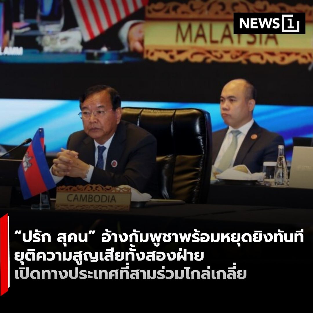 สื่อกัมพูชา Kampuchea Thmey Daily รายงานว่า เมื่อวันที่ 23 ธ.ค. นายปรัก สุคน รัฐมนตรีว่าการกระทรวงการต่างประเทศกัมพูชา ได้แถลงต่อสื่อมวลชน ณ ท่าอากาศยานนานาชาติเตโช ภายหลังเดินทางกลับจากการประชุมพิเศษรัฐมนตรีต่างประเทศอาเซียน ที่กรุงกัวลาลัมเปอร์ ซึ่งหารือสถานการณ์ความขัดแย้งระหว่างกัมพูชาและไทย