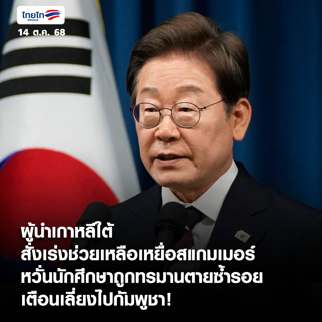 ผู้นำเกาหลีใต้สั่งเร่งช่วยเหลือเหยื่อสแกมเมอร์ หวั่นนักศึกษาถูกทรมานตายซ้ำรอย เตือนเลี่ยงไปกัมพูชา! https://www.thai-tai.tv/news/21900/ . #ไทยไท #เกาหลีใต้ #กัมพูชา #แก๊งสแกมเมอร์ #ลักพาตัว #อีแจมยอง #ยกระดับเตือนภัย