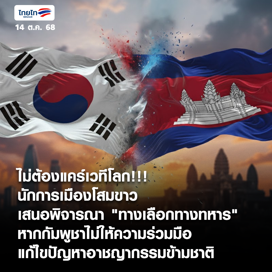 ไม่ต้องแคร์เวทีโลก!!! นักการเมืองโสมขาวเสนอพิจารณา "ทางเลือกทางทหาร" หากกัมพูชาไม่ให้ความร่วมมือแก้ไขปัญหาอาชญากรรมข้ามชาติ https://www.thai-tai.tv/news/21902/ . #ไทยไท #เกาหลีใต้ #กัมพูชา #ลักพาตัว #อาชญากรรมข้ามชาติ #ODA #ใช้กำลังทหาร #วิกฤตพลเมือง