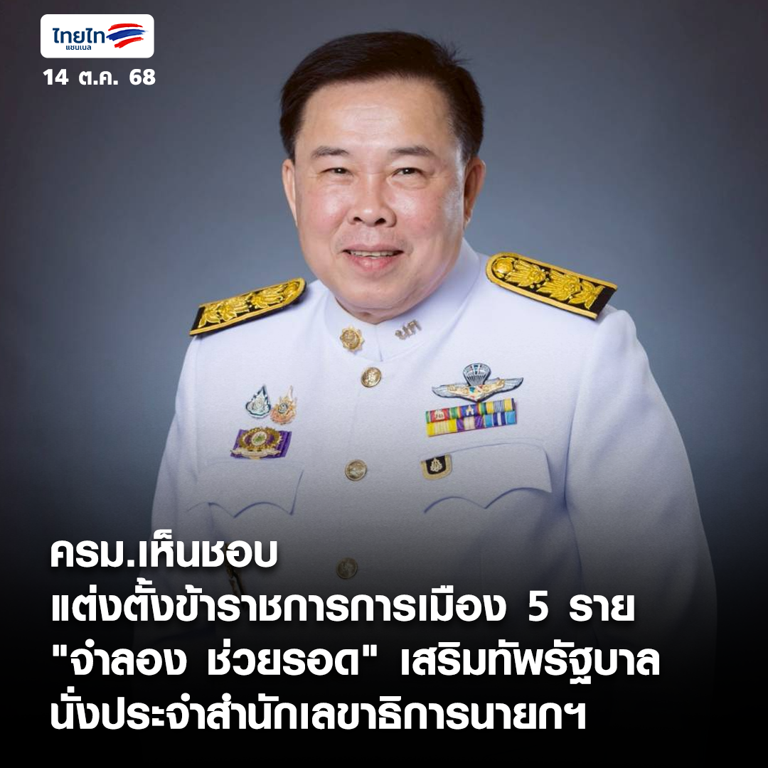• ครม.เห็นชอบ แต่งตั้งข้าราชการการเมือง 5 ราย "จำลอง ช่วยรอด" เสริมทัพรัฐบาล นั่งประจำสำนักเลขาธิการนายกฯ