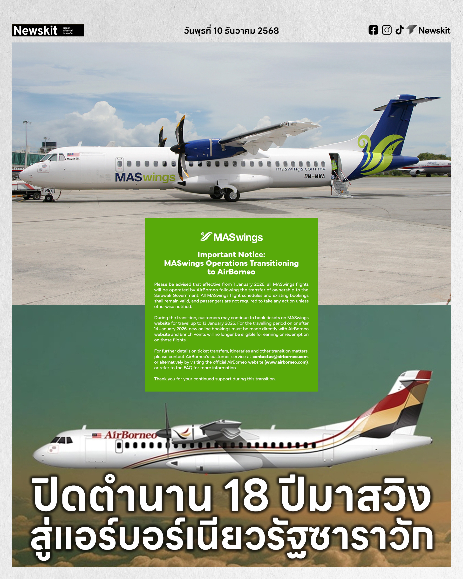 āļŠāļēāļĒāļāļēāļĢāļāļīāļāļāđāļāļāđāļŦāļĄāđāļāļāļāļĄāļēāđāļĨāđāļāļĩāļĒāļāļĩāđāļāļ·āđāļāļ§āđāļē āđāļāļĢāđāļāļāļĢāđāđāļāļĩāļĒāļ§ (Air Borneo) āļāļ°āđāļĢāļīāđāļĄāļāļģāļŦāļāđāļēāļĒāļāļąāđāļ§āđāļāļĒāļŠāļēāļĢāļāđāļēāļāđāļ§āđāļāđāļāļāđāđāļāļ§āļąāļāļāļĩāđ 10 āļ.āļ. 2568 āļāđāļāļāļāļģāļāļēāļĢāļāļīāļāļāļĢāļąāđāļāđāļĢāļāđāļāļ§āļąāļāļāļĩāđ 14 āļĄ.āļ. 2569 āļŦāļĨāļąāļāļĢāļąāļāļāļēāļĨāļāđāļāļāļāļīāđāļāļĢāļąāļāļāļēāļĢāļēāļ§āļąāļ āļāļ·āđāļāļāļīāļāļāļēāļĢāļŠāļēāļĒāļāļēāļĢāļāļīāļāļĄāļēāļŠāļ§āļīāļ (MASWings) āļāļēāļāļāļĨāļļāđāļĄāļĄāļēāđāļĨāđāļāļĩāļĒ āđāļāļ§āļīāđāļāļāļąāļ āļāļĢāļļāđāļ (MAG) āđāļāđāļēāļāļāļāļŠāļēāļĒāļāļēāļĢāļāļīāļāļĄāļēāđāļĨāđāļāļĩāļĒāđāļāļĢāđāđāļĨāļāđ (Malaysia Airlines) āļĄāļēāļāļąāđāļāđāļāđāđāļāļ·āļāļ āļ.āļ. 2568